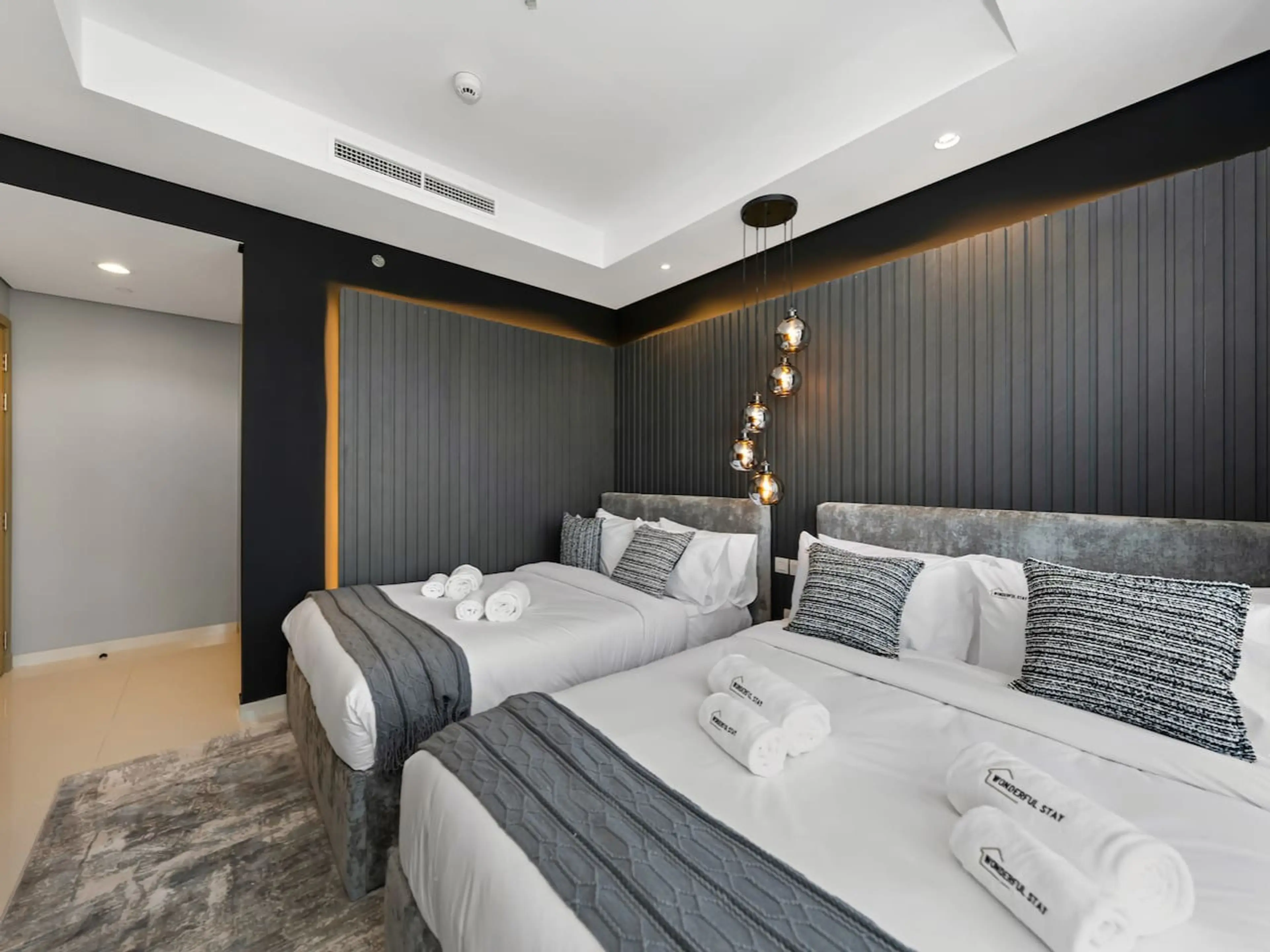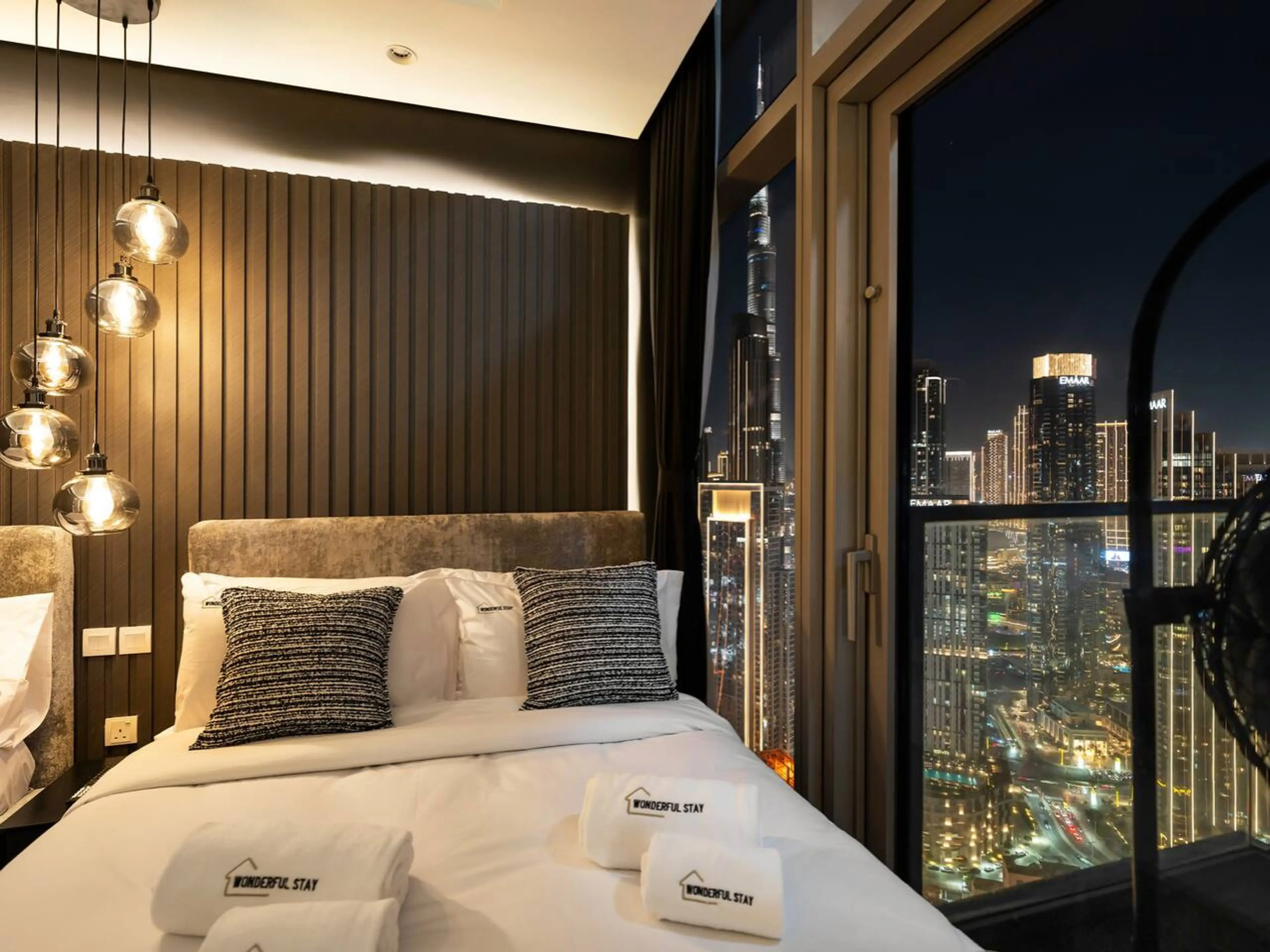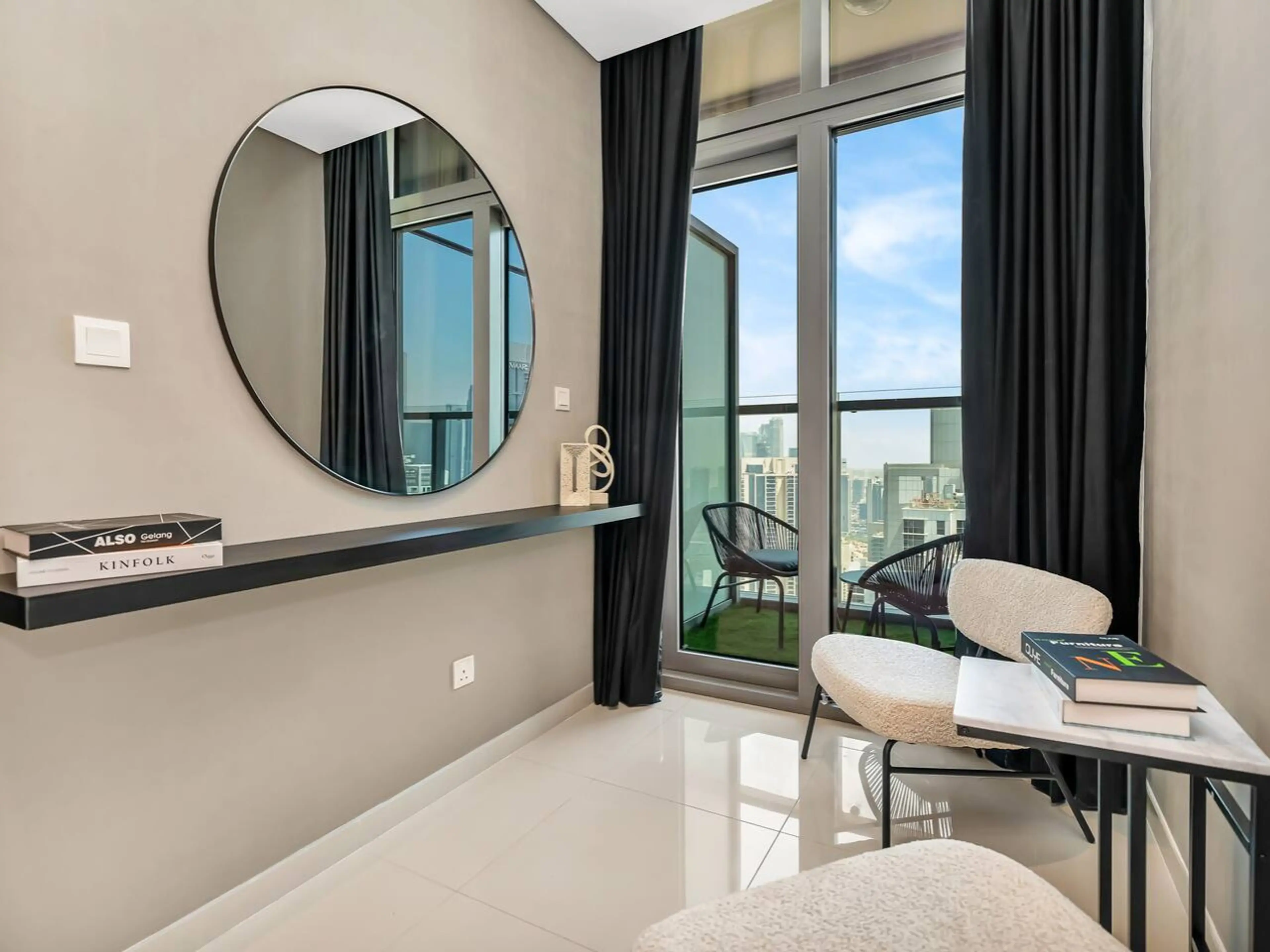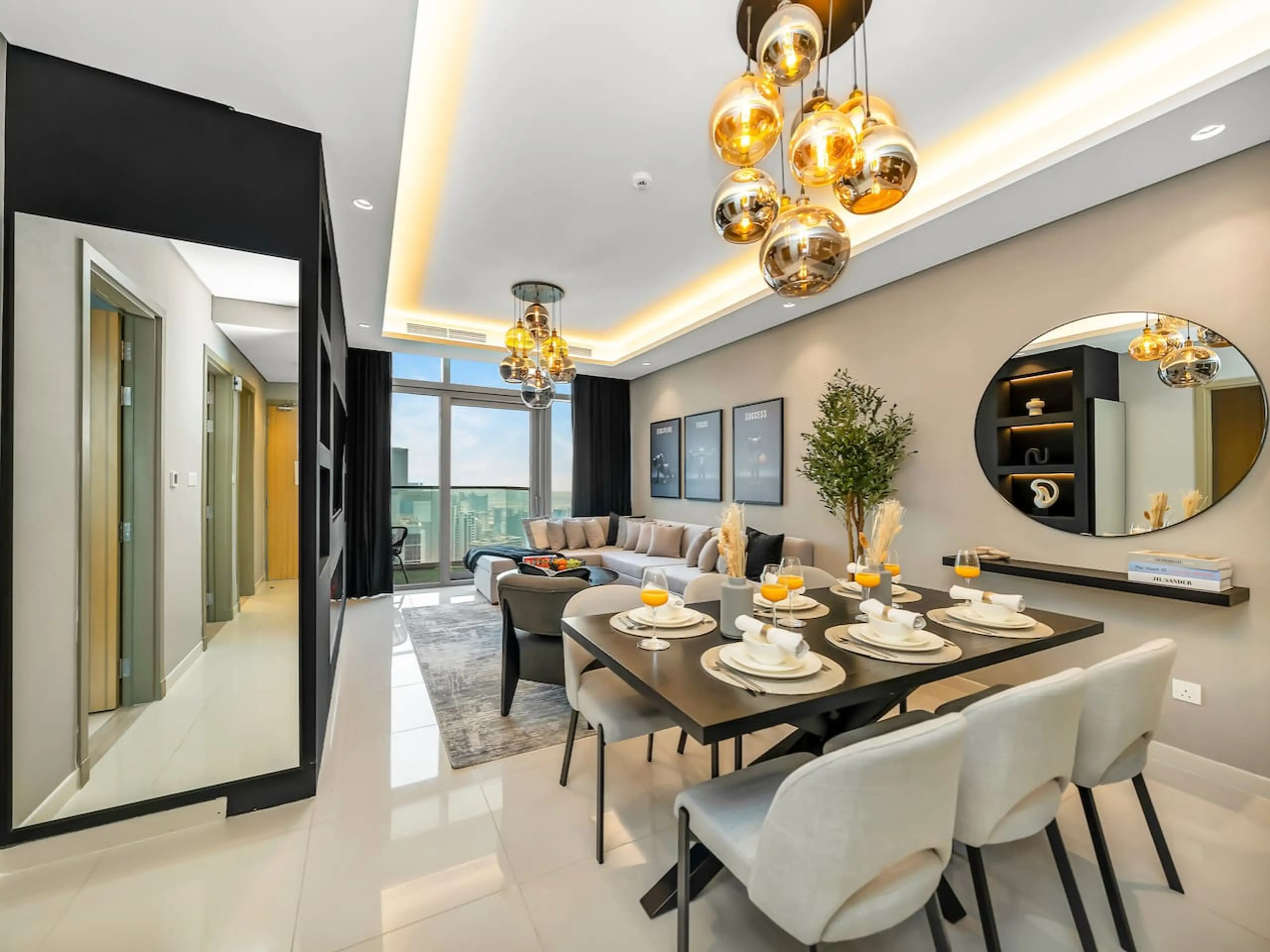 Experience luxury on the 50th floor at the 5 Star Paramount Midtown Hotel and Residence, Dubai near Downtown and Metro. This stylish 2-bedroom, 2-bathroom 110 (sqm) apartment offers stunning views of the Burj Khalifa and ocean. Enjoy high class amenities, a fully equipped kitchen, and a cozy living ...