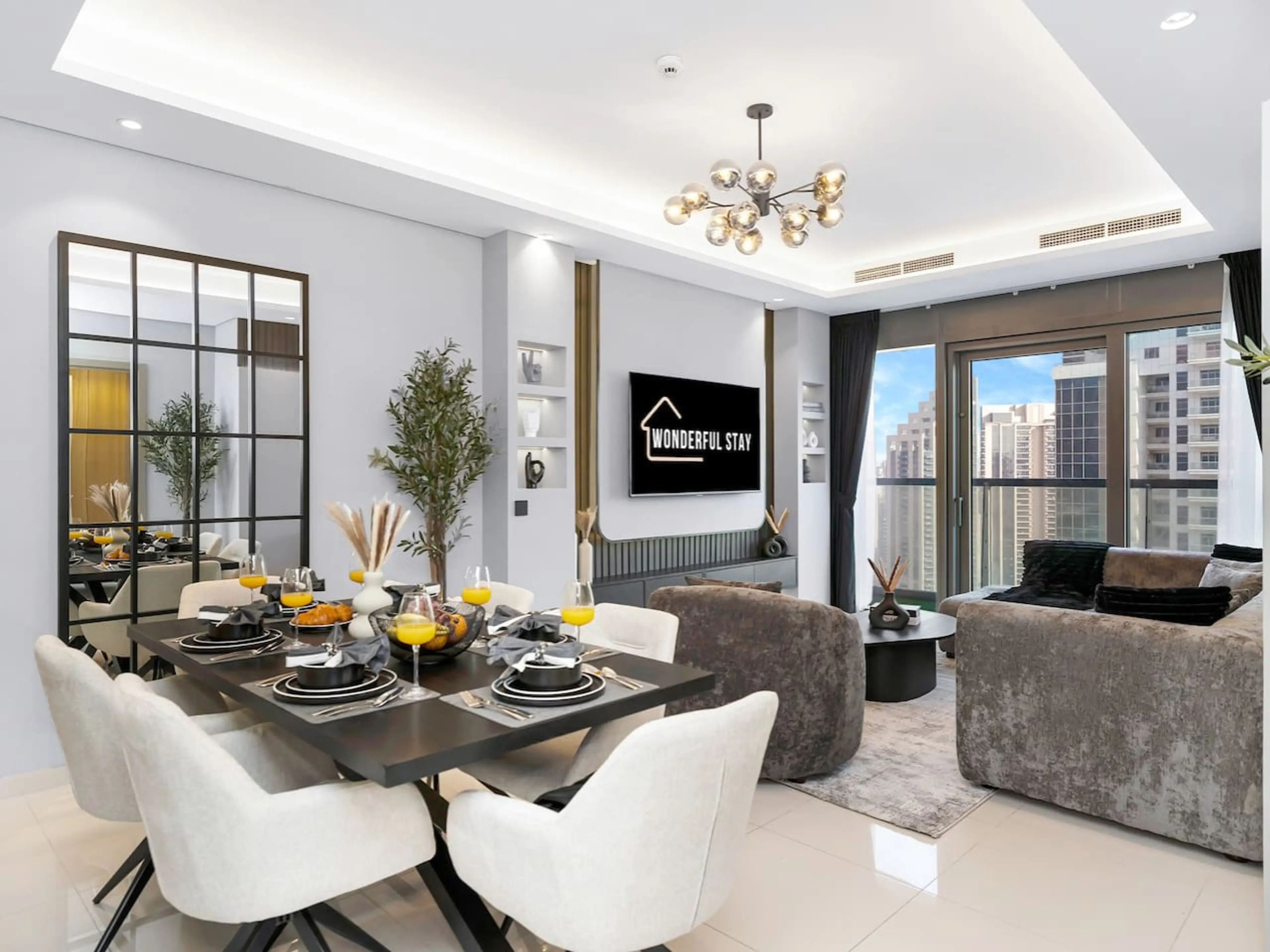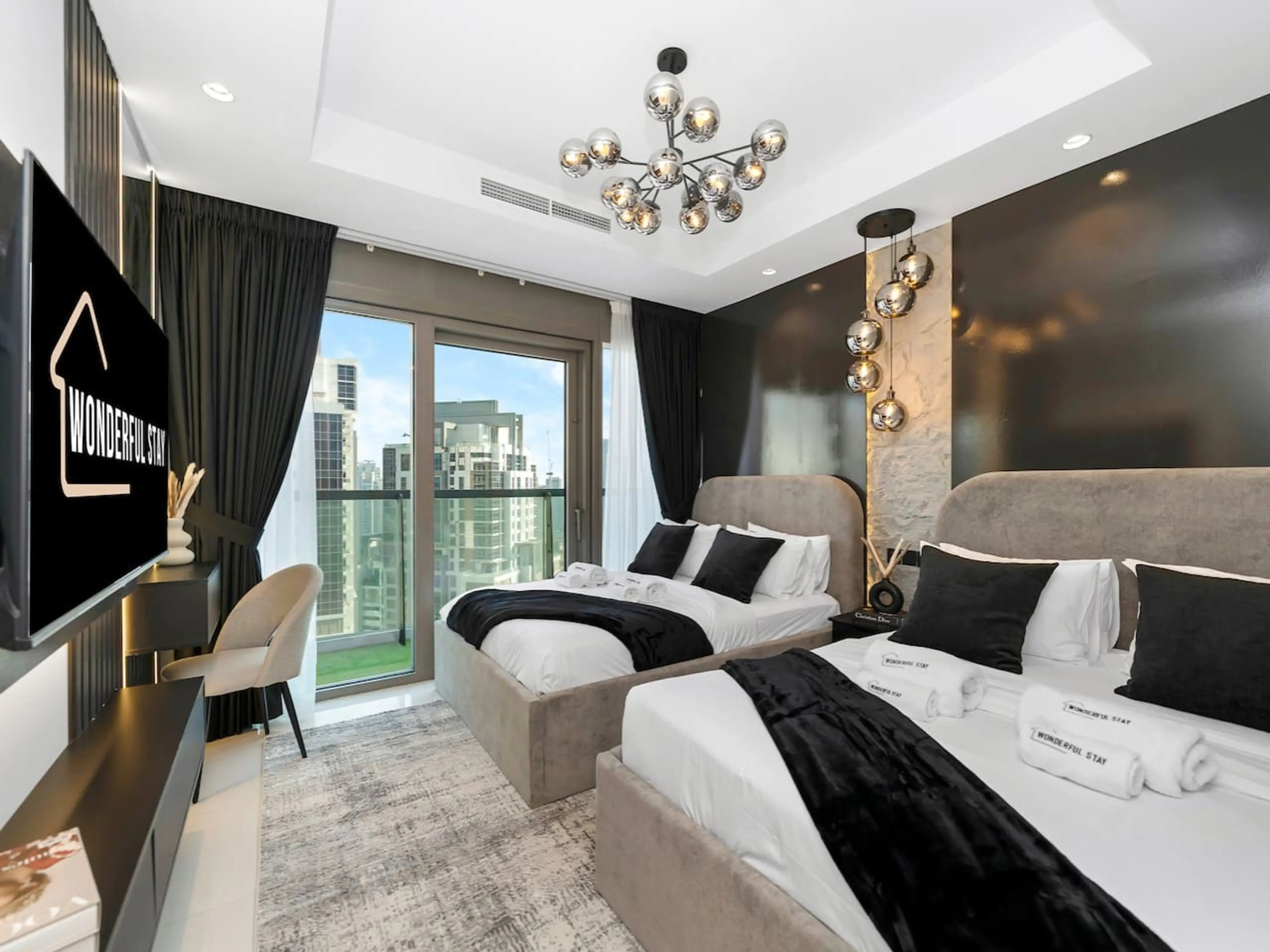 Experience luxury on the 37th floor at the 5 Star Paramount Midtown Hotel and Residence, Dubai near Downtown and Metro. This stylish 2-bedroom, 2-bathroom 110 (sqm) apartment offers stunning views of the Burj Khalifa and ocean. Enjoy high class amenities, a fully equipped kitchen, and a cozy living ...